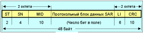 Рис. 4.3.5.6. Структура pdu подуровня SAR ATM 3/4-го типов