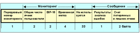 В субполе направление действия заносится код 10 при направлении от А к В и 01 при противоположном направлении. В поле размер записывается код 1000 при длине 1024 ячеек, 0100 - при 512, 0010 - при 256 и 0001 – при 128. Размеры блоков для направлений А ->b и В ->a могут быть и неравными. Мониторинг рабочих параметров может выполняться для А ->b, В ->a или для обоих направлений одновременно. Формат ячеек oam типа измерение рабочих характеристик представлен на рис. 4.3.5.16.