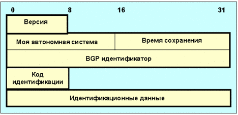 После того как связь на транспортном протокольном уровне установлена, первое сообщение, которое должно быть послано - это OPEN. При успешном прохождении этого сообщения партнер должен откликнуться сообщением KEEPALIVE ("Еще жив"). После этого возможны любые сообщения. Кроме заголовка сообщение open содержит следующие поля (рис. 4.4.11.4.2):