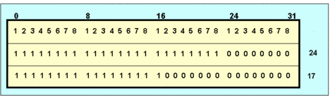 Бесклассовая интердоменная маршрутизация (CIDR- classless interdomain routing, RFC-1520, -1519) - способ избежать того, чтобы каждая С-сеть требовала свою таблицу маршрутизации. Основополагающий принцип CIDR заключается в группировке (агрегатировании) IP-адресов таким образом, чтобы сократить число входов в таблицах маршрутизации (RFC-1519, RFC-1518, RFC-1467, RFC-1466). Протокол совместим с RIP-2, OSPF и BGP-4. Основу протокола составляет идея бесклассовых адресов, где нет деления между полем сети и полем ЭВМ. Дополнительная информация, например 32-разрядная маска, выделяющая поле адреса сети, передается в рамках протокола маршрутизации. При этом выдерживается строгая иерархия адресов: провайдер > предприятие > отдел/здание > сегмент локальной сети. Групповой (агрегатный) адрес воспринимается маршрутизатором как один адрес. Группу может образовывать только непрерывная последовательность IP-адресов. Такой бесклассовый интернетовский адрес часто называется IP-префиксом. Так адрес 192.1.1.0/24 означает диапазон адресов 192.1.1.0 - 192.1.1.255, а адрес 192.1.128.0/17 описывает диапазон 192.1.128.0 - 192.1.255.255, таким образом, число, следующее после косой черты, задает количество двоичных разрядов префикса. Это представление используется при описании политики маршрутизации и самих маршрутов (см. разд.4.4.11.4 - "Маршрутная политика"). Для приведенных примеров это в терминах масок выглядит следующим образом: