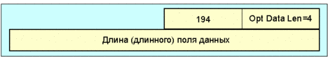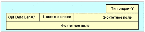 Рис. 4.4.1.1.28 Пример 2 Если опция y требует трех полей данных, одно длиной 4 октета, одно - 2 октета и одно - длиной один октет, она будет уложена следующим образом (рис. 4.4.1.1.29):