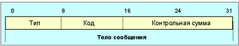 Рис. 4.4.1.1.33. Общий формат сообщений ICMPv6 Поле тип указывает на тип сообщения. Его значение определяет формат последующих данных. Поле код зависит от типа сообщения. Оно используется для создания дополнительного уровня структуризации сообщения. Поле контрольная сумма используется для обнаружения повреждений сообщения ICMPv6 и заголовка IPv6. Узел отправитель сообщения ICMPv6 должен определить IPv6-адреса отправителя и получателя до вычисления контрольной суммы. Если узел имеет более одного уникастного адреса, то он должен выбрать адрес отправителя следующим образом: