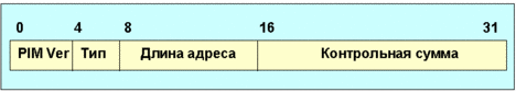 Рис. 4.4.9.5.3. Формат заголовка сообщения PIM Поле OIM VER - версия протокола (в настоящее время = 2). Поле тип характеризует PIM-сообщение. Возможные значения поля тип представлены в таблице 4.4.9.5.1. Таблица 4.4.9.5.1. Коды типа сообщений