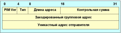 Поле длина адреса характеризует длину кода адреса в байтах. Поле контрольная сумма вычисляется методом суммирования всего pim-сообщения по модулю 1, это поле имеет длину 16 бит. Формат закодированного группового адреса показан на рис. 4.4.9.5.4.