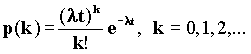 Для варианта очереди M/G/1 входной процесс характеризуется распределением Пуассона со скоростью поступления сообщений l. Вероятность поступления k сообщений на вход за время t равно: