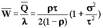 Для варианта очереди m/d/1 время обслуживания постоянно, а среднее время ожидания составляет: