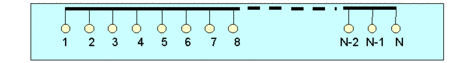 Рис. 4.5.7.1. Среднее расстояние от произвольного узла до всех остальных узлов равно D(N+1)/3, где D - расстояние между соседними узлами (предполагается константой). Возможны разные подходы к моделированию. Классический подход заключается в воспроизведении событий в сети как можно точнее и поэтапное моделирование последствий этих событий. В реальной жизни события могут происходить одновременно в различных точках сети. По этой причине для моделирования идеально подошел бы многопроцессорный компьютер, где можно воспроизводить любое число процессов одновременно. В любом случае необходимо выбрать некоторый постоянный временной интервал и считать, что события произошли одновременно, если расстояние между ними меньше этого интервала. Для сетей типа ethernet таким временным интервалом может быть бит-тайм (для 10-мегагбитного ethernet это 100нс). Понятно, что это уже отступление от реальности (ведь задержки в сетевом кабеле не кратны этому времени), но не слишком значительное. Надо сказать, что такого рода предположений при моделировании приходится делать много. По этой причине крайне важно сравнивать результаты моделирования с данными, полученными для реальной сети. Если отличия лежат в пределах 10-20%, можно считать, что сделанные предположения не увели программу слишком далеко от жизни и ею можно пользоваться для расчетов. Рассмотренный выше подход пригоден для моделирования сетевого коллапса, так как скорость расчетов здесь зависит от числа узлов и почти не зависит от сетевой загрузки. Другим подходом может стать метод, где для каждого логического сегмента (зоны столкновений) сначала моделируется очередь событий. При этом в каждой рабочей станции моделируется последовательность пакетов, ожидающих отправки. Эта очередь может время от времени модифицироваться, например, при получении ЭВМ пакета извне и необходимости послать на него отклик. После того как такая очередь для каждого сетевого объекта (сюда помимо ЭВМ входят мосты, переключатели и маршрутизаторы) построена, запускается программа отправки пакетов. При этом выбирается самый первый по времени пакет (ожидающий дольше других) и проверяются для него условия начала передачи (отсутствие несущей на входе сетевого интерфейса в данный момент и в течение 9,6 мксек до рассматриваемого момента - 96 тайм-битов). Если условия отправки выполнены, он “посылается” в сеть. Вычисляются моменты достижения им всех узлов данного логического сегмента, проверяются условия его столкновения с другими пакетами. Следует заметить, в этом подходе снимаются ограничения “дискретности” временной шкалы, использованной в предыдущем “классическом” подходе. Этот подход позволяет заметно ускорить расчеты при большом числе узлов, но малой загрузке сети. Проблемы реализации данной концепции моделирования связаны с обслуживанием довольно сложного списка, описывающего очередь пакетов, ожидающих отправки. В структуру этого списка включается и описание ситуации в сети на данный временной период. Дополнительные трудности сопряжены с поведением мостов, переключателей и маршрутизаторов, так как они могут вставлять в очередь дополнительные элементы, требующие немедленного обслуживания. Аналогичные вставки в очередь будут вызывать полученные станцией пакеты ICMP или TCP, требующие откликов. Причем такое вставл