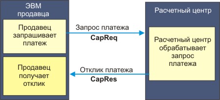 Продавец посылает запрос авторизации платежному серверу, но флаг CaptureNow не устанавливается равным “истинно”, так как запрос оплаты (capture request) будет обработан позже. В состоянии авторизовано допускается частичный пересмотр условий сделки, при этом система может вернуться в состояние заказано или остаться в состоянии авторизовано. Продавец теперь имеет платежное обязательство от эмитента карты, но он должен обработать запрос покупки, для того чтобы получить соответствующую оплату. Запрос CapReq переводит транзакцию в состояние приобретено (Captured - сделка оплачена) и заказ обрабатывается.