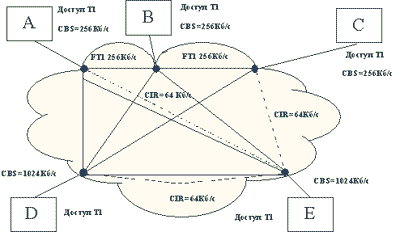 Обычно доступ к сети осуществляется каналами с большей пропускной способностью, чем CIR - пропускная способность канала должна быть равна по крайней мере величине CBS/T. Но при этом пользователь платит не за пропускную способность канала, а за заказанные величины CIR и CBS.