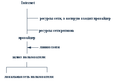 Конечно, никакая классификация не дает полного представления обо всем спектре услуг, но перед ней и не ставится такой задачи. Главное - получить некоторую структуру интересующей предметной области и потом заполнять клеточки этой структуры. Отчасти данная схема дает объяснение тому, что речь идет об Internet-провайдерах, а не об IP-провайдерах, так как круг предоставляемых услуг гораздо шире простого подключения и маршрутизации по протоколу IP. Теперь рассмотрим основные схемы подключения пользователей к Internet-провайдерам. Начнем с индивидуальных пользователей. Подключение индивидуальных пользователей В общем виде схема подключения индивидуального пользователя показана на рисунке 7.1.