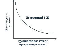 Рис. 8.1. Ортогональность языков программирования и языков баз данных То, что предлагается в языке SQL относительно возможности встраивания его конструкций в традиционный язык программирования - это попытка сгладить эту ортогональность. (Имеются в виду средства встраиваемого SQL для развертывания операций обработки результата запроса к базе данных в последовательность или цикл обработки ее строк.)