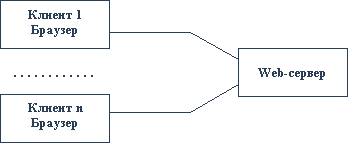 Рис. 9.5. Простая организация Intranet-системы с использованием средств WWW Однако при всех своих преимуществах (простота организации, удобство использования, стандартность интерфейсов и т.д.) эта схема обладает сильными ограничениями. Прежде всего, как видно из рисунка 9.5, в информационной системе отсутствует прикладная обработка данных. Все, что может пользователь, это только просмотреть информацию, поддерживаемую Web-сервером. Далее, гипертекстовые структуры трудно модифицируются. Для того, чтобы изменить наполнение Web-сервера, необходимо приостановить работу систему, внести изменения в HTML-описания и только затем продолжить нормальное функционирование. Наконец, далеко не всегда достаточен поиск информации в стиле просмотра гипертекста. Базы данных и соответствующие средства выборки данных по-прежнему часто необходимы. На самом деле, все перечисленные трудности могут быть разрешены с использованием более развитых механизмов Web-технологии. Эти механизмы непрерывно совершенствуются, что одновременно и хорошо и плохо. Хорошо, потому что появляются новые возможности. Плохо, потому что отсутствует стандартизация. Что касается логики приложения, то при применении Web-технологии существует возможность ее реализации на стороне Web-сервера. Для этого могут использоваться два подхода - CGI (CommonGatewayInterface) и API (ApplicationProgrammingInterface). Оба подхода основываются на наличии в языке HTML специальных конструкций, информирующих клиента-браузера, что ему следует послать Web-серверу специальное сообщение, при получении которого сервер должен вызвать соответствующую внешнюю процедуру, получить ее результаты и вернуть их клиенту в стандартном формате HTTP (рисунок 9.6).