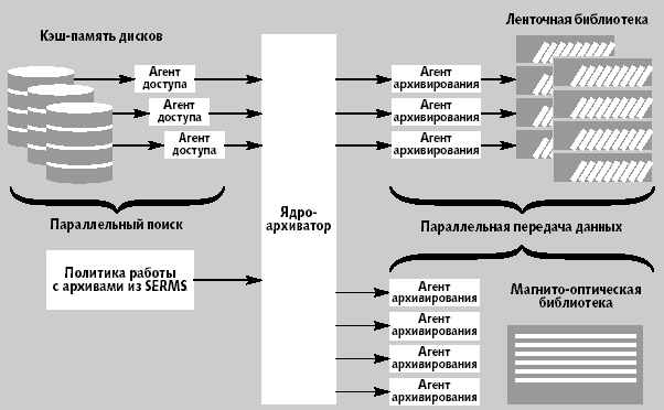 Программное обеспечение управленияStorEdge Resource Management Suite StorEdge Resource Management Suite (SERMS) — специализированное программное обеспечение для выполнения всего комплекса работ администратора ресурсов систем хранения SAN: централизованный мониторинг систем хранения в целом и отдельных их элементов; централизованное ведение отчетов; полнофункциональный анализ загруженности и применимости элементов систем сетевого консолидированного хранения данных; оценка достаточности необходимой мощности и емкости для хранения консолидированных данных в SAN; подсчет стоимостных и ресурсных затрат в виде оценочного среднего и пикового значений. SERMS включает модули Capacity Reporter, File Reporter и Global Reporter. Первый предназначен для автоматизации исследования, анализа, мониторинга и вывода статистики использования основных ресурсов консолидированного хранения. Модуль позволяет определять и локализовать критические точки функционирования сети хранения, обеспечивает с помощью графического интерфейса сетевой взгляд на систему управляемых ресурсов и структуры SAN, вывод результатов анализа функционирования SAN в виде рекомендаций и предсказаний появления возможных точек отказа, предоставляет администратору SAN вывод результатов отслеживания функционирования SAN в виде стандартизованных отчетных форм. File Reporter предназначен для автоматизации работы по управлению использования консолидированного ресурса хранения. Данная функциональность разработана в дополнение к базовой функциональности Capacity Reporter, в рамках которой администратор не в состоянии отслеживать особенности функционирования SAN применительно к понятию «файл». Global Reporter предназначен для автоматизации работы по управлению использования консолидированного ресурса хранения в том случае, если администратору систем хранения потребуется расширить базовую функциональность Capacity Reporter на гетерогенную систему и иерархическую инфраструктуру, включающую в себя как разнотипные серверы и неоднородные подсети, так и различные компоненты сети хранения. StorEdge Utilization Suite StorEdge Utilization Suite — специализированное программное обеспечение для автоматизации централизованного выполнения функциональности, связанной с ведением архивов, сохранением и аварийным восстановлением консолидированной информации в сетях хранения, предназначенное для решения следующих задач: