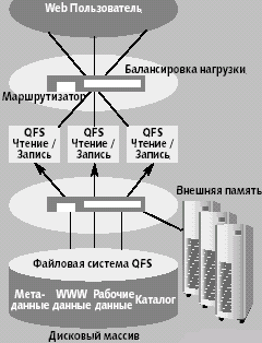 Виртуальная консолидация данныхВладимир Краюшкин24.04.2003 Открытые системы, #04/2003 Наиболее критичные проблемы, с которыми сталкивается сегодня ИТ-сообщество — обеспечение надежного, бесперебойного, постоянного и полнофункционального доступа к актуальным данным. Единственным разумным на сегодняшний день способом справиться с нарастающим информационным потоком является организация сетевого способа обработки и хранения данных. Современная сетевая обработка данных немыслима без комплекса средств, предоставляющих высокоуровневый доступ к сетевым данным, обеспечивающий их постоянную готовность, защиту от сбоев, автоматическое архивирование и эффективное восстановление, автоматизацию мониторинга использования сетевых ресурсов. Клиенты получают доступ к серверам приложений, Web-службам и ресурсам консолидированного хранения (SAN) в гетерогенной сети как к виртуально централизованному пулу служб. Процессы, клиенты и их запросы транслируются в сеть, где посредством маршрутизации назначаются на обработку пулу приложений, по необходимости требующих доступа к сетевому консолидированному ресурсу хранения. Наверное, единственным разумным способом справиться сегодня с нарастающим информационным потоком является организация сетевого способа обработки и хранения данных. Применительно к компании Sun Microsystems такой подход служит с одной стороны логическим развитием ее идеологии — «Сеть — это компьютер», а с другой — продуктивной альтернативой экстенсивному «традиционному» способу хранения информации, предполагающему использование локального дискового пространства каждой конкретной машины. Несколько слов о системах храненияСамый простой и «естественный» способ хранения информации — носитель, локально подключенный к машине пользователя. Этот способ, DAS (Direct Attached Storage), действительно прост — если компьютер включен, то все внутреннее дисковое пространство доступно без ограничений. Однако на этом преимущества заканчиваются. Далее следует длинный список недостатков: необходимость обеспечения достоверности данных ложится на пользователя, который должен обеспечивать актуальность данных, их подгрузку на локальный носитель, именно пользователь обязан заботиться о проведении профилактики локальных носителей и обеспечивать необходимую степень готовности данных. Кроме того, для особо важных данных необходимо обеспечивать работу в защищённом режиме. Использование DAS не на машине пользователя, а в сети в составе сетевого файл-сервера не уменьшает важность перечисленных проблем, а только позволяет сосредоточить их решение в руках администраторов.Следующим «эволюционным» шагом в развитии понятия «системы хранения» стали системы класса NAS (Network Attached Storage) — сетевые системы хранения данных. Эти системы используют стандартные IP-сети и сетевые файловые системы. Именно NAS-системы пришли на смену DAS-структурам, подключаемым к сети, при организации общедоступных многотомных архивов. Подход NAS включает в себя файловую систему, используемую на базе соответствующей настраиваемой сетевой операционной системы и файл-сервер, подключённый в сеть. В отличие от DAS, технология NAS поддерживает доступ на уровне файлов, а не блоков данных. Следствие этого отличия — «бесшовная» методика совместного использования различными сетевыми при