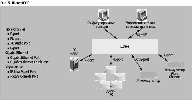 Для установления соединений между удаленными сетями хранения по локальным, территориальным и глобальным сетям FCIP использует соответствующие службы, но при этом, контролируя переполнение канала FCIP, опирается на TCP/IP, а в обработке ошибок в данных и восстановлении данных — на Fibre Channel. В отличие от iSCSI в данном случае не приходится решать всего комплекса проблем, связанных с надежностью и безопасностью: они решаются стандартными средствами TCP/IP. Задача пользователя ограничивается выбором канала соответствующей пропускной способности (скажем, ОС-12 или ОС-48), а затем магистральные маршрутизаторы свяжут отдельные фрагменты в единую сеть. Важно, что средства управления, используемые в глобальных сетях, полностью и автоматически могут быть приложены к FCIP. Можно выделить пять областей применения FCIP [8]. 1. Объединение нескольких корпоративных сетей хранения в пределах, географически ограниченных размерами предприятия или учреждения (обычно такую область называют кампусом по примеру университетских городков). В какой-то момент существования корпоративной сети хранения перед специалистами с неизбежностью встает вопрос, как именно дальше развивать инфраструктуру — ограничиться технологией Fibre Channel или воспользоваться средствами FCIP. Часто последнее решение оказывается более оправданным экономически. 2. Ставшие в последнее время особенно востребованными решения, обеспечивающие резервирование информации и создание катастрофоустойчивых конфигураций. 3. Более эффективное распространение контента. По мере роста объемов передаваемых данных, особенно с появлением аудио- и видеоинформации, все более актуальной становится задача обмена информацией между теми инфрастрактурами, которые ее хранят, и потребителями — напрямую, без участия серверов. Это в некотором смысле реинкарнация на новом уровне одной из базисных идей SAN — обеспечить возможность взаимодействия между накопителями без вмешательства в этот процесс серверов. 4. Появление услуги хранения данных силами провайдеров SSP. По мере снижения стоимости дисков и других типов накопителей наиболее актуальными становятся задачи снижения стоимости управления системами хранения и их масштабирование, создание систем «памяти по запросу» (storage on demand). Технологии, предлагаемые провайдерами SSP, решают эти проблемы. Пользователи обращаются к дискам, расположенным в центрах хранения данных как к локальным, а провайдер осуществляет прозрачное для них управление ресурсами. Наращивание дискового пространства выполняется по мере необходимости, проявляемой приложениями, и тоже может быть вполне прозрачным для пользователя. 5. World Wide SAN. Как конечная цель развития сетей хранения может рассматриваться создание Всемирной сети хранения, некоторого аналога WWW, однако это вопрос еще неопределенного будущего. iFCPСпецификация [9] определяет iFCP как протокол межшлюзового соединения (gateway-to-gateway). Это соединение предназначено для замены матрицы Fibre Channel Fabric с ее маршрутизирующими и коммутирующими функциями своими собственными средствами на основе TCP/IP, которые способны выполнять по существу те же самые функции, но на другой технической основе. Важно, что, предоставляя аналогичные возможности, iFCP позволяет подключать к IP-сетям и существующие устройства, используемые в Fibre Channel, хотя при этом не испол