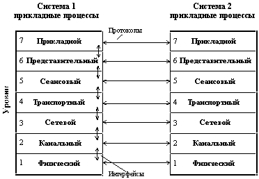 ПриложенияПротокол, интерфейс, стек протоколов. Модель ISO/OSIЧтобы упростить проектирование, анализ и реализацию процедуры обмена сообщениями между пользователями или прикладными программами, работающими на разных компьютерах, эту процедуру декомпозируют на несколько иерархически связанных между собой частных задач, то есть используют многоуровневый подход. При передаче сообщений оба участника сетевого обмена должны принять множество соглашений. Например, они должны согласовать уровни и форму электрических сигналов, способ определения длины сообщений, договориться о методах контроля достоверности и т.п. Другими словами, соглашения должны быть приняты для всех уровней, начиная от самого низкого уровня передачи битов, до самого высокого уровня, детализирующего, как информация должна быть интерпретирована. Такие формализованные правила, определяющие последовательность и формат сообщений, которыми обмениваются сетевые компоненты, лежащие на одном уровне, но в разных узлах, называются протоколами. Иерархически организованная совокупность протоколов, решающих задачу взаимодействия узлов сети называется стеком коммуникационных протоколов. Протоколы соседних уровней, находящихся в одном узле, взаимодействуют друг с другом также в соответствии с четко определенными правилами и с помощью стандартизованных форматов сообщений. Эти правила принято называть интерфейсом. Интерфейс определяет набор услуг, которые нижележащий уровень предоставляет вышележащему. Международная Организация по Стандартам (International Standards Organization, ISO) разработала модель, которая четко определяет различные уровни взаимодействия систем, дает им стандартные имена и указывает, какую работу должен делать каждый уровень. Эта модель называется моделью взаимодействия открытых систем (Open System Interconnection, OSI) или моделью ISO/OSI. В модели OSI взаимодействие делится на семь уровней или слоев, как показано на рисунке 5.1. Каждый уровень имеет дело с одним определенным аспектом взаимодействия. Таким образом, проблема взаимодействия декомпозирована на 7 частных проблем, каждая из которых может быть решена независимо от других. Каждый уровень поддерживает интерфейсы с выше- и нижележащими уровнями. Модель OSI описывает только системные средства взаимодействия, не касаясь приложений конечных пользователей. Приложения реализуют свои собственные протоколы взаимодействия, обращаясь к системным средствам. Следует иметь ввиду, что приложение может взять на себя функции некоторых верхних уровней модели OSI, в таком случае при необходимости обмена данными оно обращается напрямую к системным средствам, выполняющим функции оставшихся нижних уровней модели OSI. Приложение конечного пользователя может использовать системные средства взаимодействия не только для организации диалога с другим приложением, выполняющимся на другой машине, но и просто для получения услуг того или иного сетевого сервиса, например, доступа к удаленным файлам, получение почты или печати на разделяемом принтере.