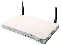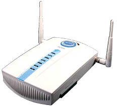 ZyAIR G-3000 - точка доступа для беспроводных сетей корпоративного уровня. Эта модель имеет две съемных антенны с коэффициентом усиления 2 дБм, допускает настенное размещение и может получать питание по кабелю Ethernet (PoE). В G-3000 реализована возможность одновременной работы на двух неперекрывающихся частотных диапазонах 802.11g. Правда, для включения второго радиоинтерфейса необходимо вставить в слот расширения PC Card-адаптер G-110 (c выпуском PC Card-адаптера стандарта 802.11a станет возможна одновременная работа в диапазонах 802.11a и 802.11g).