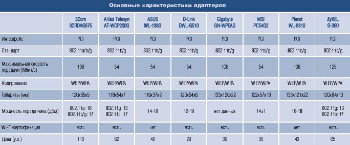 Основные характеристики адаптеров