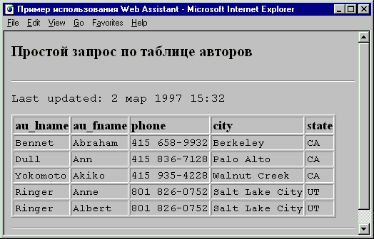 На рисунке 25 приведен пример страницы, созданной с помощью Web Assistant. Кроме Web Assistant для получения тех же результатов можно использовать следующие хранимые процедуры: