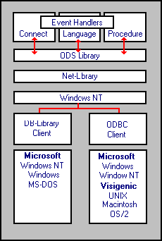 Приложения первого типа называются серверами ODS. В большинстве своем ODS-серверы выполняют функции шлюзов к источникам данных, не являющимся серверами SQL. Серверы ODS самостоятельно производят регистрацию пользователей, обработку запросов и хранимых процедур. Приложения второго типа называют расширенными хранимыми процедурами, они обеспечивают выполнение функций и доступ к данным, поддержка которых не обеспечивается SQL Server, и исполняются как часть процесса сервера, С точки зрения пользователей они ведут себя как обычные хранимые процедуры. Расширенные хранимые процедуры создаются на языках C/C++ в виде динамических библиотек, установка, регистрация и назначение прав на запуск выполняется пользователем с правами SA. Как работает ODS ODS предоставляет в распоряжение разработчика готовое базовое окружение, способное обеспечить одновременный прием запросов от множества клиентов, использующих различные сетевые протоколы. Клиентские приложения общаются с ODS сервером, используя те же средства, что и для общения с SQL Server. После получения запроса от клиента ODS определяет тип этого запроса и переадресует его соответствующему обработчику событий (event handler). Результат обработки ODS возвращает клиентскому приложению. В ODS определены три основных вида событий:
