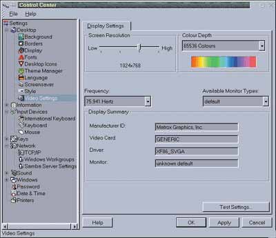 Рис. 1 Все те же пиктограммы на рабочем столе, "мусорный ящик", панель задач и даже лоток с часами, датой и переключателем языка. Разве что название главной кнопки отличается: в Windows - это слово Start, в KDE - буква K, а в Corel LINUX - Application Starter. Однако откройте ее - и найдете знакомые пункты меню для поиска файлов, запуска произвольных программ, папки автоматического запуска приложений и т. п. Если настроить оболочку, то в главное меню будут вноситься приложения, наиболее часто используемые вами. Удобно, знаете ли. Линеечка задач интересна еще тем, что ее можно убрать в любое время, сделать пиктограммы на ней маленькими и с их помощью переключаться между виртуальными рабочими столами. Последние для пользователей Windows несколько в диковинку. А ведь это действительно приятно - организовать несколько разных рабочих столов и переходить от одного к другому. По умолчанию в Corel LINUX их четыре, но мне и двух вполне бы хватило. Один используется как основной рабочий, а на другом я разместил бы запущенный графический редактор. Кстати, окна выполняющихся приложений можно переносить с одного рабочего стола на другой. Некоторым пользователям хотелось бы получить типичную UNIX-среду с соответствующими графическими элементами. Спешу обрадовать - отказаться от Windows-подобного внешнего вида можно в любой момент, нажав всего одну кнопку. Очень хорошо продумана в Corel LINUX технология добавления ссылок на рабочем столе. Процесс во многом схож с созданием ссылок в Windows, но в Linux ссылки называются Nicknames (клички, псевдонимы - кому как нравится). Средства конфигурацииГордостью Corel LINUX можно считать единую панель конфигурирования системы под названием Control Center. Почти все параметры операционной системы настраиваются здесь - от размера шрифтов в меню до IP-адреса компьютера (рис. 2).