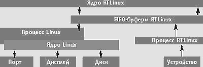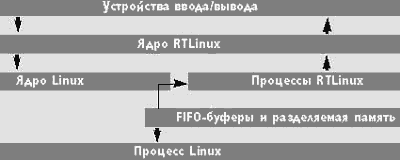 Рис. 1. Механизм работы RTLinux - Linux-расширения жесткого реального времени Для обмена данными между операционными системами реального времени и Linux могут использоваться следующие механизмы:
