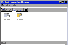 ЭКРАН 8. Окно программы Client Connection Manager. Чтобы не повторять лишний раз некоторые стандартные действия (выбор сервера, выбор разрешения экрана, ввод имени пользователя, пароля и имени домена), следует использовать программу Client Connection Manager. Запустив эту программу (Пуск / Программы / Terminal Server Client / Client Connection Manager), получим окно, изображенное на Экране 8. Данное окно содержит список имеющихся на компьютере пользователя конфигураций (вначале это окно пустое). Создадим новую конфигурацию: пункт меню File / New connection. Для задания свойств новой конфигурации необходимо выполнить несколько действий. Сначала нужно ввести название конфигурации и сервер, на котором будет запускаться сессия пользователя (имя сервера или его IP-адрес). Это действие показано на Экране 9. Название конфигурации будет отображаться в окне конфигураций, а также в виде значка в программной группе Terminal Server Client (и данную сессию можно будет открывать прямо через меню программ, не запуская Client Connection Manager).