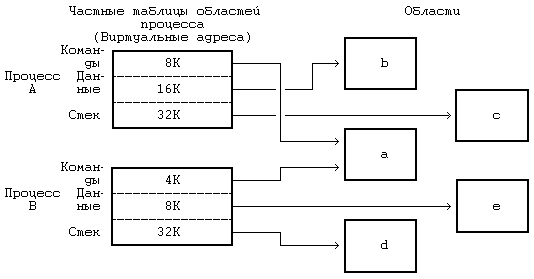 6.2 ФОРМАТ ПАМЯТИ СИСТЕМЫПредположим, что физическая память машины имеет адреса, начиная с 0 и кончая адресом, равным объему памяти в байтах. Как уже отмечалось в главе 2, процесс в системе UNIX состоит из трех логических секций: команд, данных и стека. (Общую память, которая рассматривается в главе 11, можно считать в данном контексте частью секции данных). В секции команд хранится набор машинных инструкций, исполняемых под управлением процесса; адресами в секции команд выступают адреса команд (для команд перехода и обращений к подпрограммам), адреса данных (для обращения к глобальным переменным) и адреса стека (для обращения к структурам данных, которые локализованы в подпрограммах). Если адреса в сгенерированном коде трактовать как адреса в физической памяти, два процесса не смогут параллельно выполняться, если их адреса перекрываются. Компилятор мог бы генерировать адреса, непересекающиеся у разных программ, но на универсальных ЭВМ такой порядок не практикуется, поскольку объем памяти машины ограничен, а количество транслируемых программы неограничено. Даже если для того, чтобы избежать излишнего пересечения адресов в процессе их генерации, машина будет использовать некоторый набор эвристических процедур, подобная реализация не будет достаточно гибкой и не сможет удовлетворять предъявляемым к ней требованиям. Поэтому компилятор генерирует адреса для виртуального адресного пространства заданного диапазона, а устройство управления памятью, называемое диспетчером памяти, транслирует виртуальные адреса, сгенерированные компилятором, в адреса ячеек, расположенных в физической памяти. Компилятору нет необходимости знать, в какое место в памяти ядро потом загрузит выполняемую программу. На самом деле, в памяти одновременно могут существовать несколько копий программы: все они могут выполняться, используя одни и те же виртуальные адреса, фактически же ссылаясь на разные физические ячейки. Те подсистемы ядра и аппаратные средства, которые сотрудничают в трансляции виртуальных адресов в физические, образуют подсистему управления памятью. 6.2.1 ОбластиЯдро в версии V делит виртуальное адресное пространство процесса на совокупность логических областей. Область - это непрерывная зона виртуального адресного пространства процесса, рассматриваемая в качестве отдельного объекта для совместного использования и защиты. Таким образом, команды, данные и стек обычно образуют автономные области, принадлежащие процессу. Несколько процессов могут использовать одну и ту же область. Например, если несколько процессов выполняют одну и ту же программу, вполне естественно, что они используют одну и ту же область команд. Точно так же, несколько процессов могут объединиться и использовать общую область разделяемой памяти. Ядро поддерживает таблицу областей и выделяет запись в таблице для каждой активной области в системе. В разделе 6.5 описываются поля таблицы областей и операции над областями более подробно, но на данный момент предположим, что таблица областей содержит информацию, позволяющую определить местоположение области в физической памяти. Каждый процесс имеет частную таблицу областей процесса. Записи этой таблицы могут располагаться, в зависимости от конкретной реализации, в таблице процессов, в адресном пространстве про