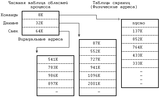 6.8 УПРАЖНЕНИЯ1. Составьте алгоритм преобразования виртуальных адресов в физические, на входе которого задаются виртуальный адрес и адрес точки входа в частную таблицу областей. 2. В машинах AT&T 3B2 и NSC серии 32000 используется двухуровневая схема трансляции виртуальных адресов в физические (с сегментацией). То есть в системе поддерживается указатель на таблицу страниц, каждая запись которой может адресовать фиксированную часть адресного пространства процесса по смещению в таблице. Сравните алгоритм трансляции виртуальных адресов на этих машинах с алгоритмом, изложенным в тексте при обсуждении модели управления памятью. Подумайте над проблемами производительности и потребности в памяти для размещения вспомогательных таблиц. 3. В архитектуре системы VAX-11 поддерживаются два набора регистров защиты памяти, используемых машиной в процессе трансляции пользовательских адресов. Механизм трансляции используется тот же, что и в предыдущем пункте, за одним исключением: указателей на таблицу страниц здесь два. Если процесс располагает тремя областями - команд, данных и стека - то каким образом, используя два набора регистров, следует производить отображение областей на таблицы страниц? Увеличение стека в архитектуре системы VAX-11 идет в направлении младших виртуальных адресов. Какой тогда вид имела бы область стека? В главе 11 будет рассмотрена область разделяемой памяти: как она может быть реализована в архитектуре системы VAX-11? 4. Составьте алгоритм выделения и освобождения страниц памяти и таблиц страниц. Какие структуры данных следует использовать, чтобы достичь наивысшей производительности или наибольшей простоты реализации алгоритма? 5. Устройство управления памятью MC68451 для семейства микропроцессоров Motorola 68000 допускает выделение сегментов памяти размером от 256 байт до 16 мегабайт. Каждое (физическое) устройство управления памятью поддерживает 32 дескриптора сегментов. Опишите эффективный метод выделения памяти для этого случая. Каким образом осуществлялась бы реализация областей? 6. Рассмотрим отображение виртуальных адресов, представленное на Рисунке 6.5. Предположим, что ядро выгружает процесс (в системе с подкачкой процессов) или откачивает в область стека большое количество страниц (в системе с замещением страниц). Если через какое-то время процесс обратится к виртуальному адресу 68432, будет ли он должен обратиться к соответствующей ячейке физической памяти, из которой он считывал данные до того, как была выполнена операция выгрузки (откачки)? Если нижние уровни системы управления памятью реализуются с использованием таблицы страниц, следует ли эти таблицы располагать в тех же, что и сами страницы, местах физической памяти? *7. Можно реализовать систему, в которой стек ядра располагается над вершиной стека задачи. Подумайте о достоинствах и недостатках подобной системы. 8. Каким образом, присоединяя область к процессу, ядро может проверить то, что эта область не накладывается на виртуальные адреса областей, уже присоединенных к процессу? 9. Обратимся к алгоритму переключения контекста. Допустим, что в системе готов к выполнению только один процесс. Другими словами, ядро выбирает для выполнения процесс с только что сохраненным контекстом. Объясните, что произойдет при этом. 10. Предположим, что процесс приостановился, но в 
