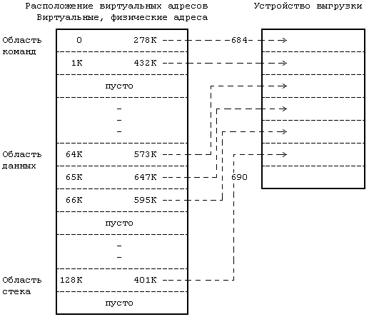 Рисунок 9.6. Отображение пространства процесса на устройство выгрузки