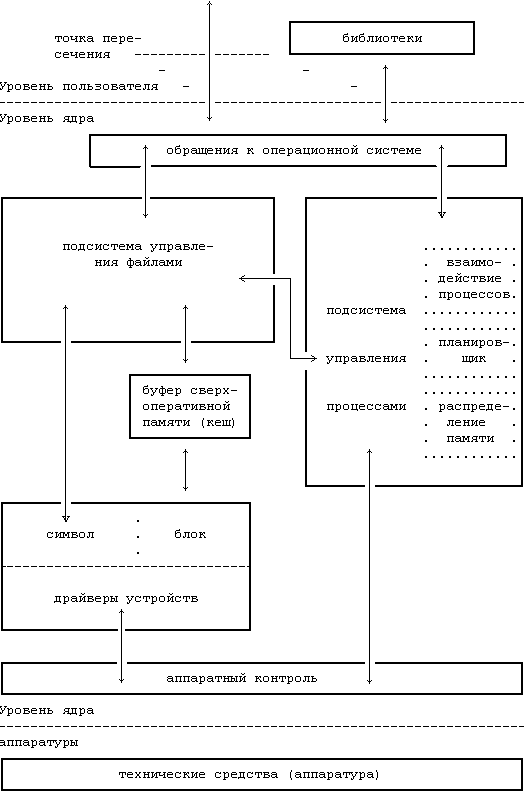 10.1 ВЗАИМОДЕЙСТВИЕ ДРАЙВЕРОВ С ПРОГРАММНОЙ И АППАРАТНОЙ СРЕДОЙВ системе UNIX имеется два типа устройств - устройства ввода/вывода блоками и устройства неструктурированного или посимвольного ввода-вывода. Как уже говорилось в главе 2, устройства ввода-вывода блоками, такие как диски и ленты, для остальной части системы выглядят как запоминающие устройства с произвольной выборкой; к устройствам посимвольного ввода-вывода относятся все другие устройства, в том числе терминалы и сетевое оборудование. Устройства ввода-вывода блоками могут иметь интерфейс и с устройствами посимвольного ввода-вывода. Пользователь взаимодействует с устройствами через посредничество файловой системы (см. Рисунок 2.1). Каждое устройство имеет имя, похожее на имя файла, и пользователь обращается к нему как к файлу. Специальный файл устройства имеет индекс и занимает место в иерархии каталогов файловой системы. Файл устройства отличается от других файлов типом файла, хранящимся в его индексе, либо "блочный", либо "символьный специальный", в зависимости от устройства, которое этот файл представляет. Если устройство имеет как блочный, так и символьный интерфейс, его представляют два файла: специальный файл устройства ввода-вывода блоками и специальный файл устройства посимвольного ввода-вывода. Системные функции для обычных файлов, такие как open, close, read и write, имеют то же значение и для устройств, в чем мы убедимся позже. Системная функция ioctl предоставляет процессам возможность управлять устройствами посимвольного ввода-вывода, но не применима в отношении к файлам обычного типа (*). Тем не менее, драйверам устройств нет необходимости поддерживать полный набор системных функций. Например, вышеупомянутый драйвер трассировки дает процессам возможность читать записи, созданные другими драйверами, но не позволяет создавать их. 10.1.1 Конфигурация системыЗадание конфигурации системы это процедура указания администраторами значений параметров, с помощью которых производится настройка системы. Некоторые из параметров указывают размеры таблиц ядра, таких как таблица процессов, таблица индексов и таблица файлов, а также сколько буферов помещается в буферном пуле. С помощью других параметров указывается конфигурация устройств, то есть производятся конкретные указания ядру, какие устройства включаются в данную системную реализацию и их "адрес". Например, в конфигурации может быть указано, что терминальная плата вставлена в соответствующий разъем на аппаратной панели. Существует три стадии, на которых может быть указана конфигурация устройств. Во-первых, администраторы могут кодировать информацию о конфигурации в файлах, которые транслируются и компонуются во время построения ядра. Информация о конфигурации обычно указывается в простом формате, и программа конфигурации преобразует ее в файл, готовый для трансляции. Во-вторых, администраторы могут указывать информацию о конфигурации после того, как система уже запущена; ядро динамически корректирует внутренние таблицы конфигурации. Наконец, самоидентифицирующиеся устройства дают ядру возможность узнать, какие из устройств включены. Ядро считывает аппаратные ключи для самонастройки. Подробности задания системной конфигурации выходят за пределы этой книги, однако во всех случаях результатом проце