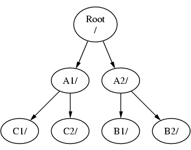один корневой каталог, в котором содержатся другие каталоги, называемые A1, A2 (и аналогично B1, B2 и C1,