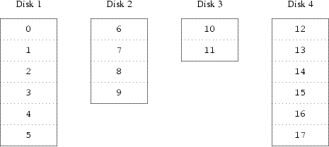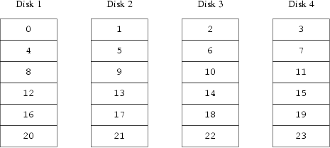 Например, первая группа из 256 секторов будет расположены на первом физическом диске,