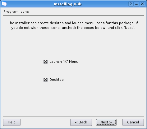 При установке задается один-единственный вопрос - включать ли пакет в K-меню и помещать ли его пиктограмму на рабочий стол (рис. 9).