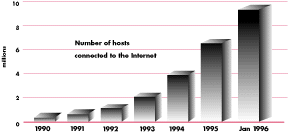 Что вам дает использование интрасетей и Internet?На современном высококонкурентном рынке получение доступа к самой последней информации становится все более важным компонентом успеха в бизнесе. Старая информация -- это бесполезная информация. Те компании, которые научатся получать доступ к информации в Internet и интеллектуально использовать такие данные, например, применяя их для обслуживания своих покупателей, совершенствования внутренних процессов или сокращения цикла разработки продукции, увидят, как все это отразиться на процветании их бизнеса. Доступ к разнообразной информации и услугам в InternetКаким же образом Internet обеспечивает доступ к столь обширной и разнообразной информации? С помощью огромного числа подключенных к ней хост-узлов. С января 1990 г. по январь 1997 г. число хост-узлов в Internet выросло с менее чем 500 тыс. до более 16 млн.1 Многие из этих компьютеров выполняют роль серверов, предлагающих любому пользователю, имеющему выход в Internet, доступ к электронным ресурсам -- данным, приложениям и услугам. По этой причине широта и многообразие информации в Internet просто невообразимы. Internet позволяет вам обращаться к фондам Библиотеки Конгресса США, следить за результатами спортивных соревнований, узнавать о наличии номеров в гостинице, контролировать доставку товара, просматривать последние биржевые сводки или делать разнообразные покупки (например, приобрести книгу или модем).