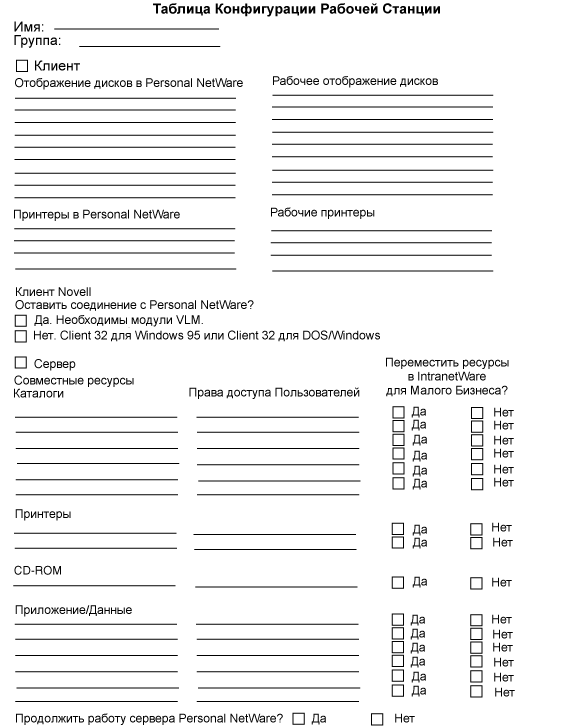 копию этой таблицы для каждой рабочей станции и сервера Вашей сети.