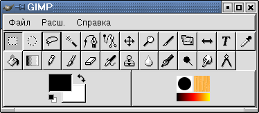 Рис. 15.19. Главное окно программы GIMP Кроме этих окон можно открыть (из меню, вызываемого через команду Файл | Диалоги) различные вспомогательные окна, служащие для выбора инструментов, шаблонов, задания цвета (палитра), слоев (layers) и т. д. Окно инструментов (рис. 15.19) содержит: