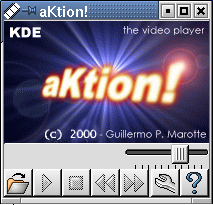 Загрузить список файлов в xmms можно не только с помощью редактора списка мелодий, но и непосредственно из командной строки, с помощью одной из следующих команд: xmms file1.mp3 file2.mp3 file3.mp3 xmms *.mp3 xmms playlist.m3u Если в это время программа xmms уже запущена, то текущий список мелодий будет удален, а список, заданный командной строкой, будет загружен. Что еще надо сказать, так это то, что xmms может воспроизводить не только файлы формата mp3, но и обычные аудио-CD. Только для того, чтобы создать список мелодий в этом случае, надо воспользоваться кнопкой +DIR и выбрать каталог /mnt/cdrom. 15.8.2 ВидеоПрограмма aKtionЕсли среди программ для прослушивания аудио под Linux имеется явный лидер (я имею в виду xmms), то среди программ для воспроизведения видео такого лидера пока нет. А. Федорчук для просмотра видео рекомендует программу aKtion§. Устанавливается она, правда, не из всех дистрибутивов. На моем домашнем компьютере, где стоит ALT Linux Junior 1.0, эта программа нашлась, а вот в составе дистрибутива Red Hat 7.1 Cyrillic Edition ее не обнаружилось. Зато там есть программа Noatun, которая тоже может воспроизводить видео. Однако aKtion показалась мне более совершенной. Давайте вначале ее и рассмотрим. Ведь любую программу можно установить, даже если она не входит в дистрибутив. Программу aKtion, а также все необходимые для нее библиотеки можно найти либо на сайте KDE (http://www.kde.org) или на сайте программы xanim (http://xanim.va.pubnix.com/home.html), так как aKtion представляет собой графическую оболочку для Xanim§. Она поддерживает многие видео-форматы, включая mpeg1, QuickTime и анимированный gif. После запуска программы вы увидите окно, изображенное на рис. 15.32.
