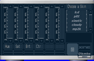 Рис. 15.37. Список фильмов / файлов (playlist) Программа имеет еще одно вспомогательное окно, о котором стоит упомянуть (рис.15.38). Оно появляется после нажатия на пятую слева кнопку на панели управления. Назначение этого окна состоит в изменении некоторых параметров вывода изображения на экран и изменения “шкурок” (skins), то есть изменения внешнего вида окон. Впрочем, имеющиеся в этом окне ползунки изменения яркости, контраста и других параметров изображения в текущей версии (0.9.8) не работают. А вот «шкурки» можно менять и даже добавлять новые, скачивая их из Интернета (так же как в программах XMMS или Winamp). Для смены «шкурки» достаточно выбрать ее имя щелчком кнопки мыши по ее имени в правой части диалогового окна изменения параметров (рис. 15.38).