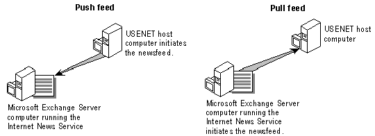 Рис. 1.16. Сервер Exchange способен выступать в роли pull и push feed Дополнительно к поддержке взаимодействия на уровне сервер-сервер сети USENET, Exchange может выступать в роли сервера новостей для обычных news-клиентов, использующих программы просмотра новостей Internet, что позволяет использовать один сервер Exchange как для организации почты внутри организации, так и поддержки собственных групп новостей в Internet. Отличительной особенностью сервера новостей на Exchange является возможность назначения прав пользователям на работу с той или иной конференцией. Назад | Содержание | Вперед |
