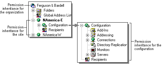 В Exchange Server используется следующая схема наследования прав (рисунок 2.20):