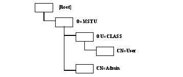 Ранее уже отмечалось, что системная база данных сетевых ресурсов (СБДСР) представляет собой совокупность объектов, их свойств и значений этих свойств. В NetWare 4.х эта база данных называется NDS (NetWare Directory Services), а в NetWare 3.х - Bindery. Отличия NDS от Bindery описаны в отдельном разделе, который посвящён глобальному сетевому каталогу (NDS). Объекты NDS связаны между собой в иерархическую структуру, которую часто называют деревом NDS. На верхних уровнях дерева (ближе к корню [Root]) описываются логические ресурсы, которые принято называть контейнерными объектами. На самом нижнем (листьевом) уровне располагаются описания физических ресурсов, которые называют оконечными объектами. В качестве контейнерных объектов используются объекты типа [Root] (корень), C (страна), O (организация), OU (организационная единица). Оконечные объекты - это User (пользователь), Group (группа), NetWare Server (сервер NetWare), Volume (том файлового сервера), Directories (директория тома) и т. д. Оконечные объекты имеют единое обозначение - CN. В NetWare 4.х разработан механизм защиты дерева NDS. Этот механизм очень похож на механизм защиты файловой системы, который был рассмотрен ранее. Чтобы облегчить понимание этого механизма, оконечный объект можно интерпретировать как файл, а контейнерный объект - как каталог, в котором могут быть созданы другие контейнерные объекты (как бы подкаталоги) и оконечные объекты (как бы файлы). На рисунке 2.57 представлена схема дерева NDS. Здесь символами [Root], C, O, OU обозначены контейнерные объекты, а символами CN - оконечные объекты. В отличие от файловой системы здесь права по отношению к какому-либо объекту можно предоставить любому контейнерному или оконечному объекту дерева NDS. В частности допустимо рекурсивное назначение прав объекта по отношению к этому же объекту.