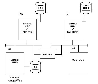 - Windows-программы на станции администратора для реализации функций мониторинга и управления (консоль ManageWise).