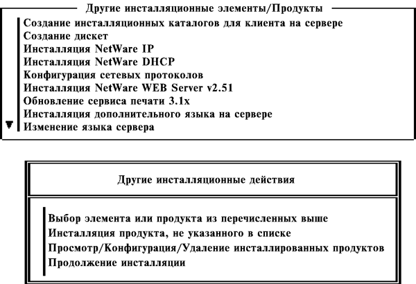 - Из меню "Другие инсталляционные действия" выберите "Выбор элемента или продукта из перечисленных выше" и нажмите <Enter>.