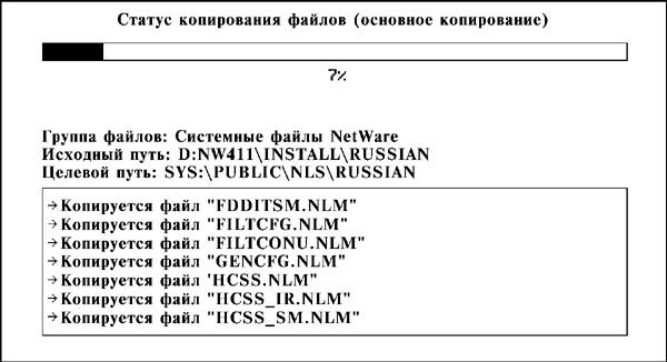 После этого начинается процесс копирования на сервер оставшихся файлов NetWare (см. Рис. 3-40). Это может занять несколько минут.