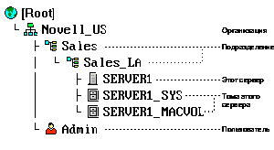 - Управлять деревом Каталога (предоставляется только ADMIN, созданному на первом сервере NetWare 4.11).