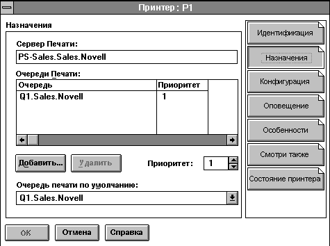 Очередь печати по умолчанию будет использована для заданий, в которых определен принтер, но не указана очередь (например, в команде CAPTURE). Определение особенностей принтера