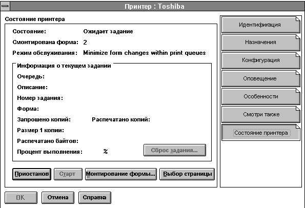 Если Вы оператор очереди печати или направили в нее задание, которое хотите просмотреть, можно изменять содержимое полей, не отмеченных серым цветом.