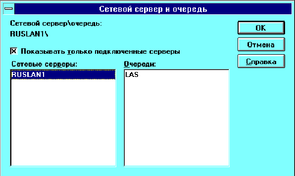 Появится окно "Сетевой сервер\очередь", аналогичное изображенному ниже.