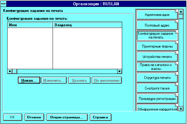 Конфигурации заданий на печать - это группы опций задания на печать, упрощающие использование утилит CAPTURE и NPRINT. Для создания и изменения конфигураций заданий на печать Вы можете использовать NetWare Administrator. Для передачи заданий в сетевой принтер или в очередь печати эти конфигурации могут определять принтер по умолчанию или другие опции для пользователей, использующих CAPTURE, NPRINT, NETUSER или PCONSOLE.